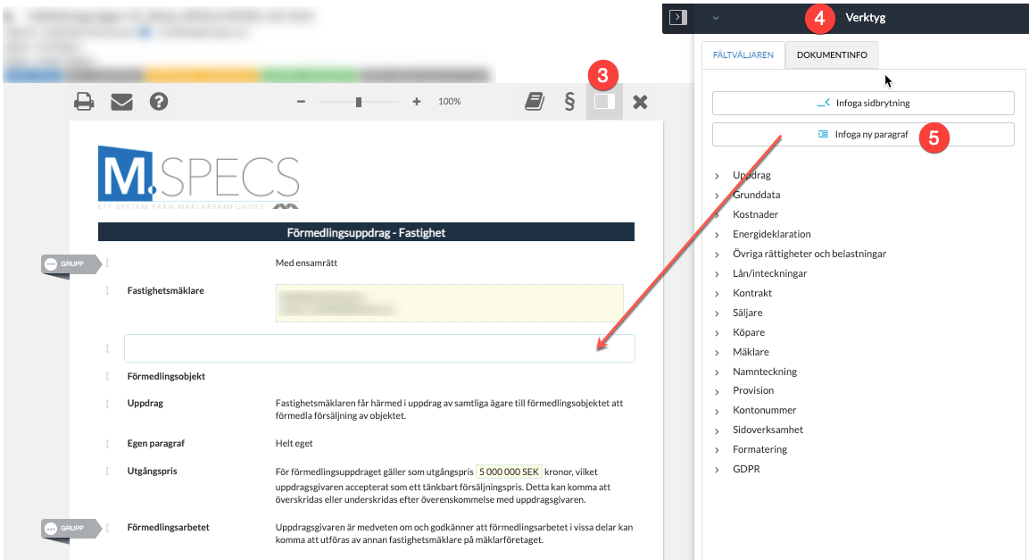 5. Klicka på Infoga ny paragraf och använd ”drag och släpp” för att lägga in den nya paragrafen till önskad plats i dokumentet.