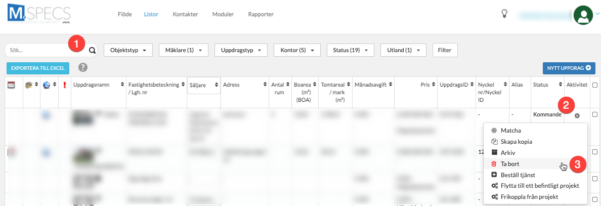 - Klicka på Listor i den övre menyraden i Mspecs.