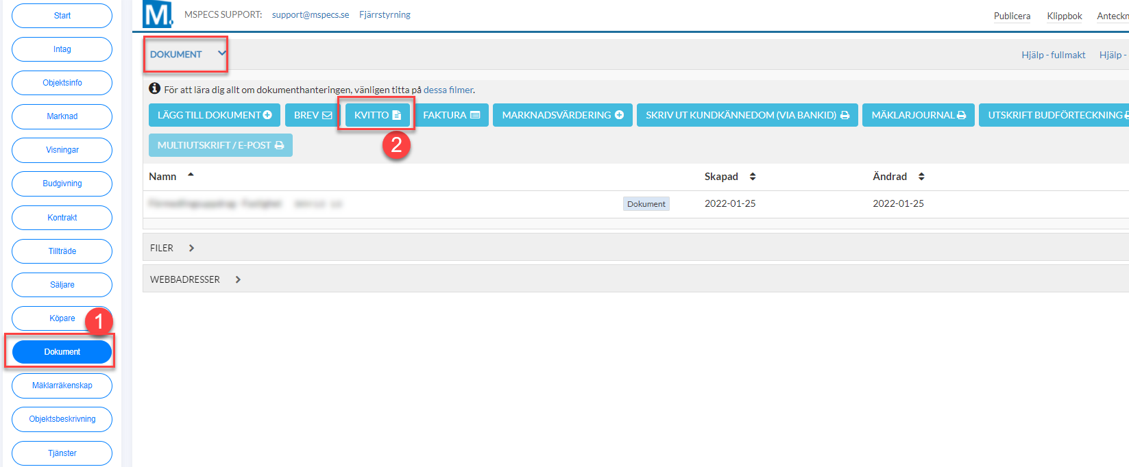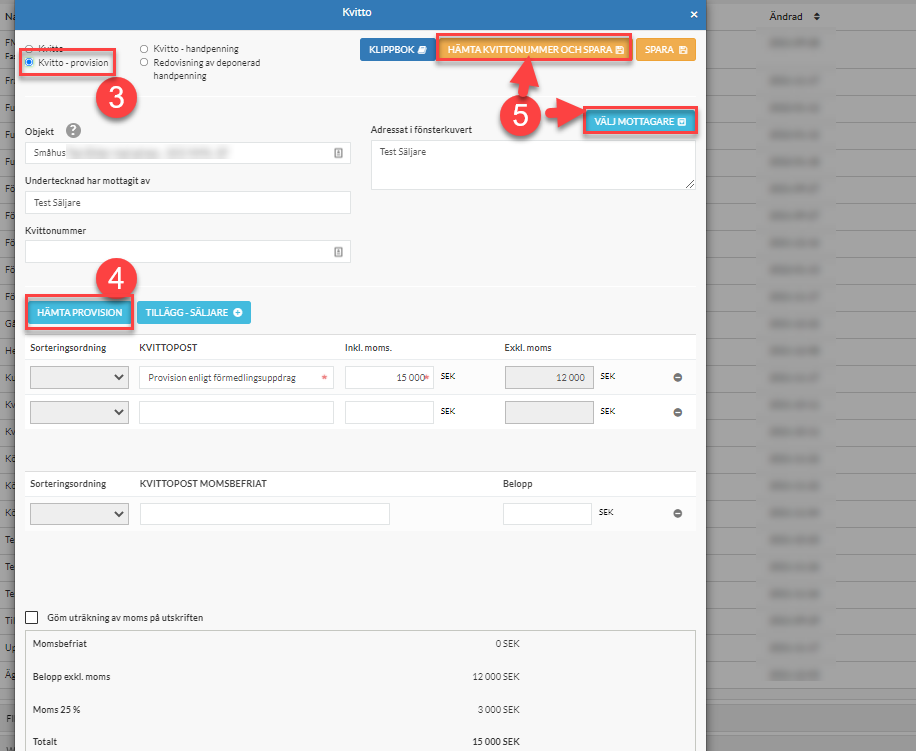 - Välj sedan mottagare, i det här fallet säljaren. Hämta även kvittonummer högst upp i högra hörnet och sedan spara.