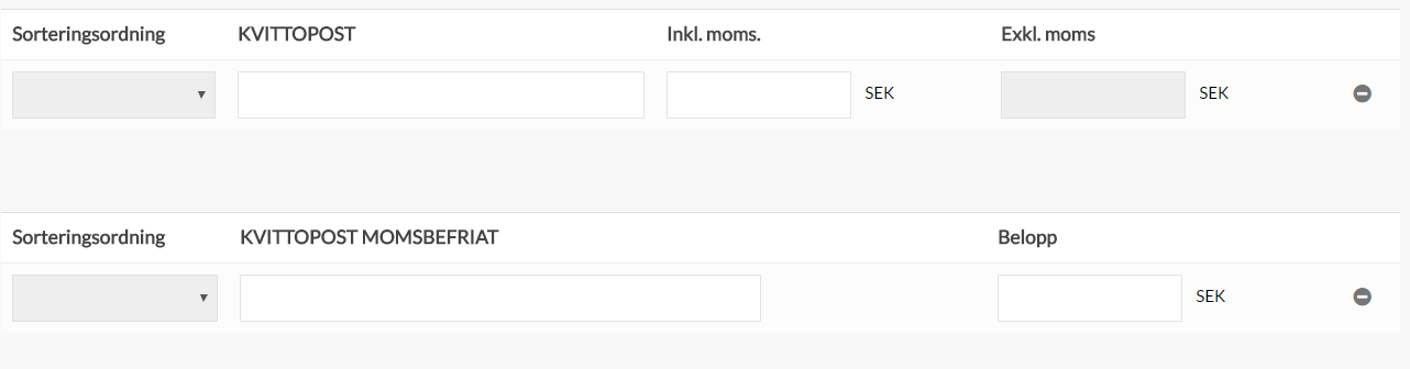 1. Kvitto - Standard ifall ni ska skriva ett kvitto för övriga tjänster