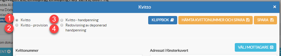 2. Kvitto - Provision, ifall ni ska skriva ett provisionskvitto.