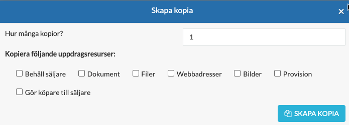 6. Välj antal kopior samt vilken information ni vill ska kopieras med till det nya uppdraget: