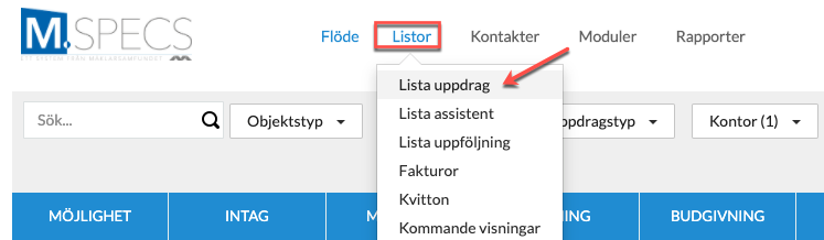 2. Gå sedan vidare in på Lista uppdrag.