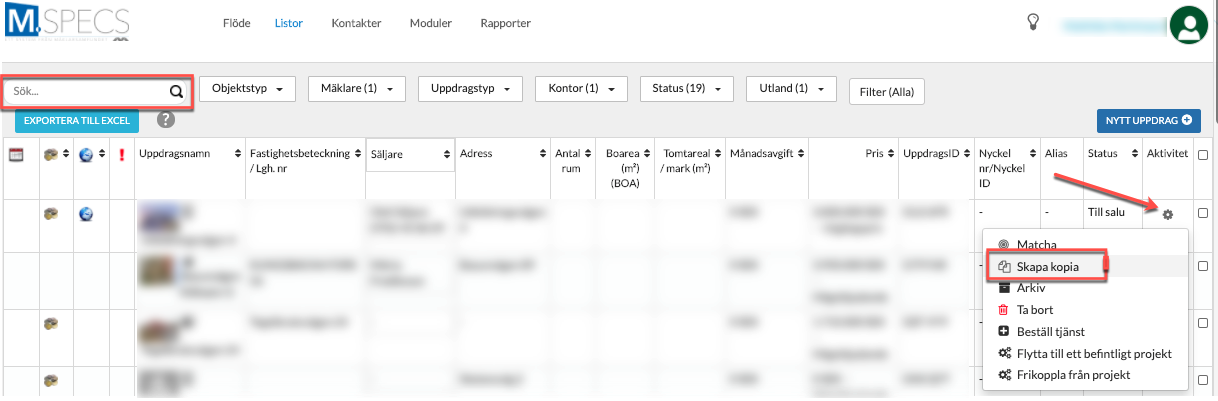 3. Sök upp objektet ni vill skapa en kopia av.