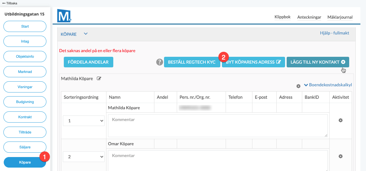 - Efter att du bekräftat bytet, kommer alla köparnas adresser ändrats till objektets adress.