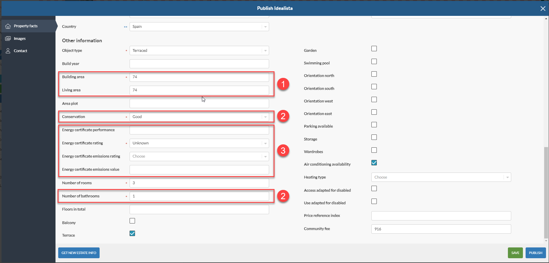 Vänligen kontrollera dessa fält om du har problem med publiceringen till Idealista: