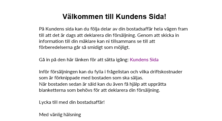 Mejlet som skickas ut till säljaren ser ut ungefär såhär: